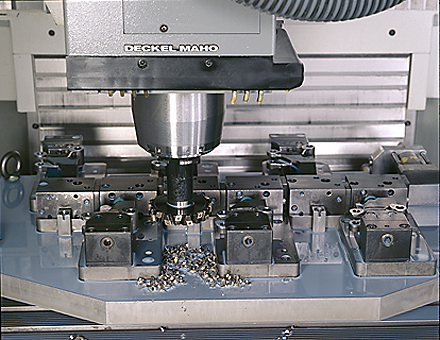Sieben CNC-Zentren fräsen dreischichtig. Wir sind auf komplexe Geometrien spezialisiert, denn wir verfügen über Spezialknow-How bei den Spannvorrichtungen. Jede Spannvorrichtung konstruiert und baut die Schwesterfirma Knieps. Durch langfristige Erprobung und Analyse von Schnittdaten entwickeln wir mit den Herstellern eigene Wendeplatten und insbesondere Sonderwerkzeuge für die mechanische Bearbeitung. Dadurch wird jeder Zerspanungsauftrag rational gefertigt.